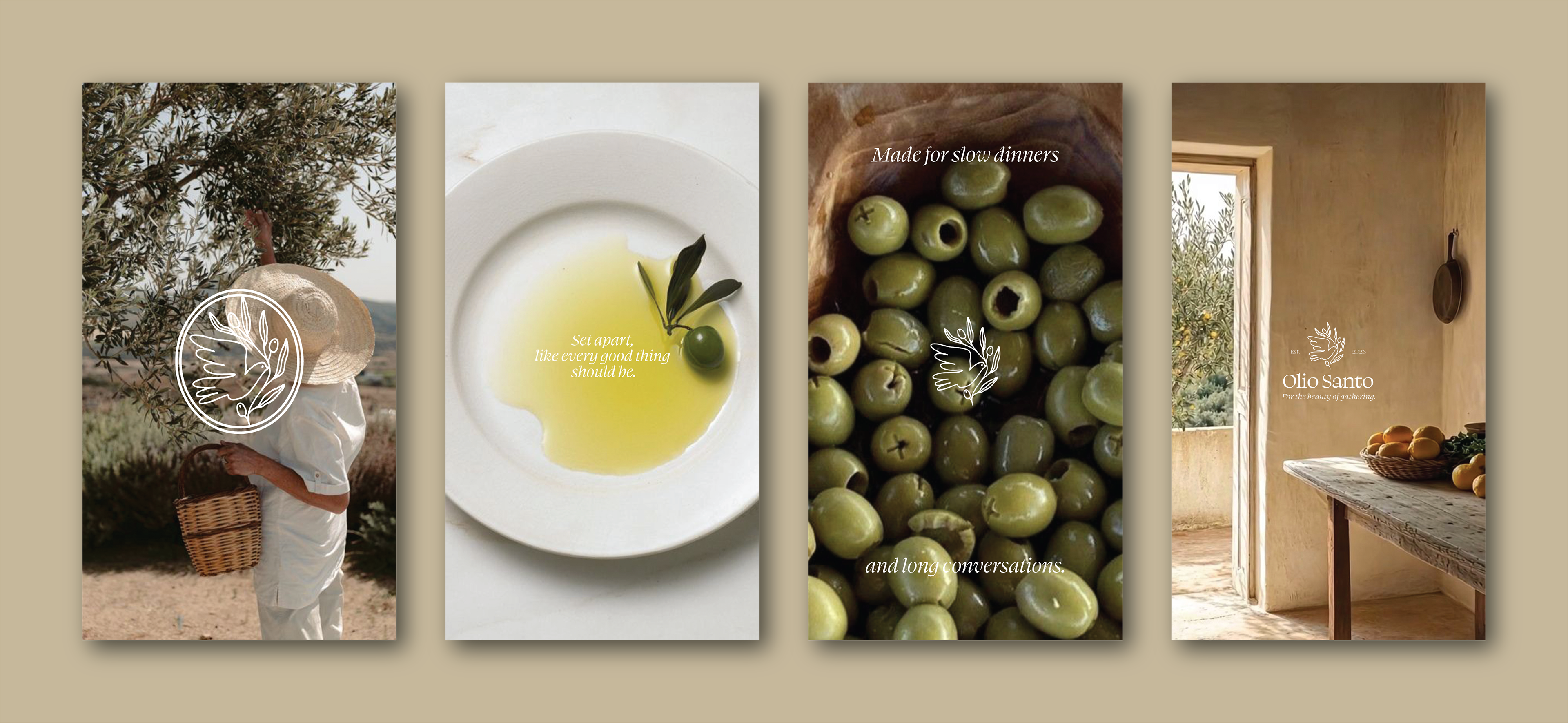Olio Santo is a Mediterranean olive oil brand rooted in tradition, simplicity, and the quiet beauty of the table — crafted to elevate everyday meals into something meaningful. It is inspired by the meaning of “santo”, meaning set apart, intentional, and made for the moments that matter.